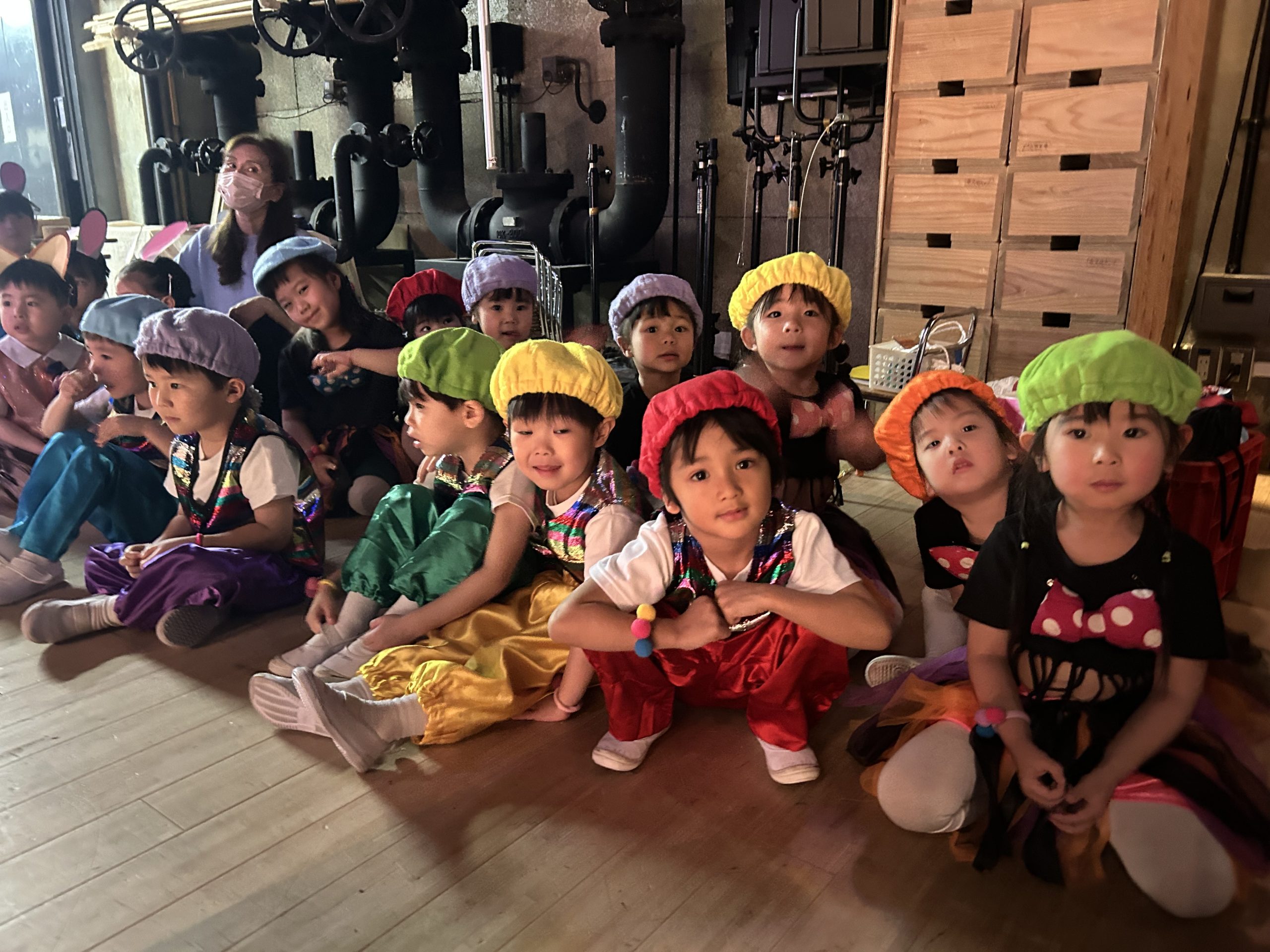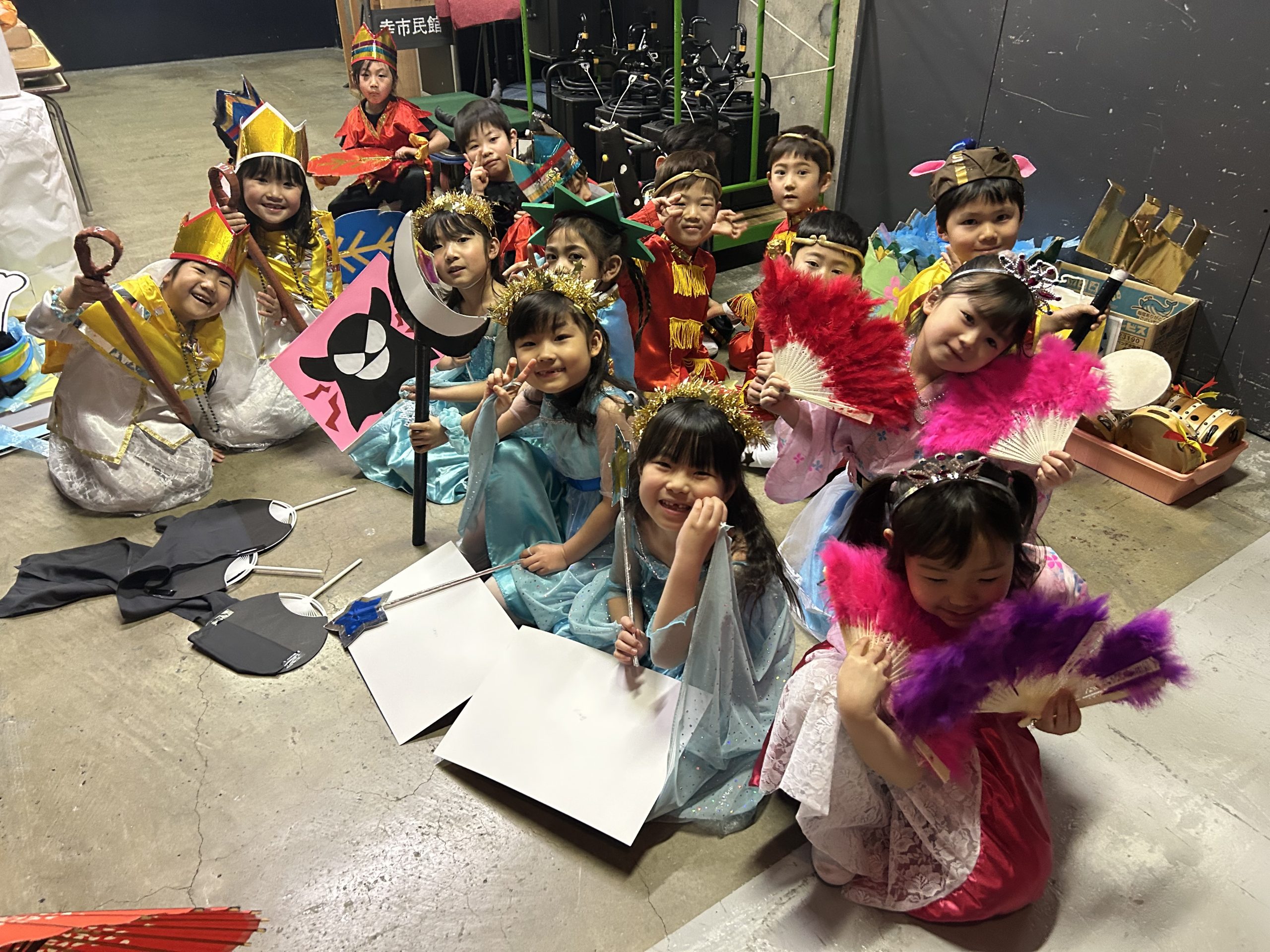 大きな舞台、スポット、照明にみんなドキドキでしたが、ステキな衣装に着替えると・・・