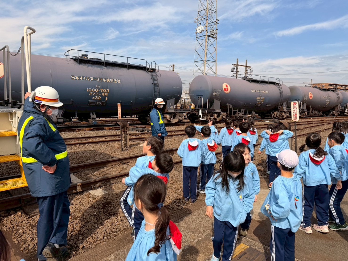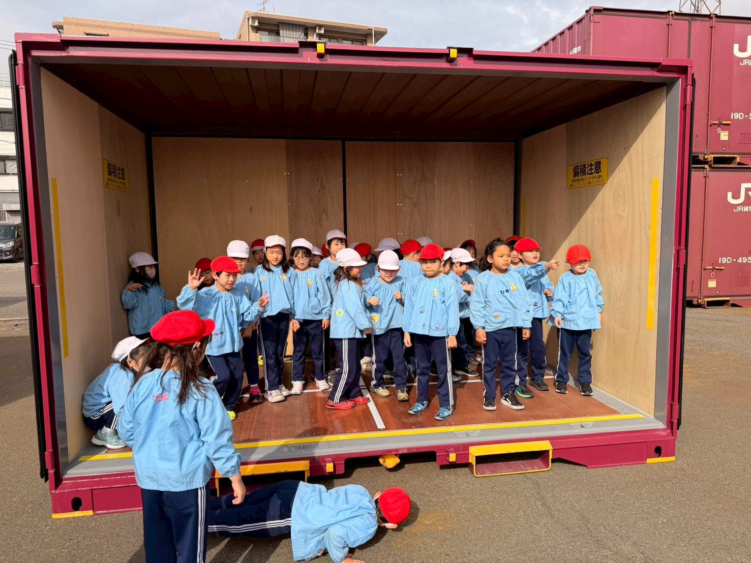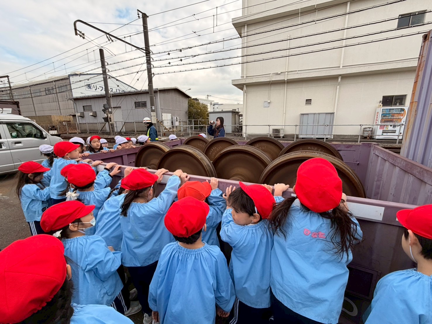 年長組 お別れ遠足 2026 2/20 お知らせ 年長組のお別れ遠足で、川崎貨物駅に行きました🚌コンテナの中に入ったり、電車の車輪を間近に見たり、線路の上を実際に歩いたり、本物の機関車の運転席に乗ってレバーを触らせてもらったりと、どれも初めての体験に子どもたちも先生も大興奮でした🎵 お知らせ 生活発表会📸