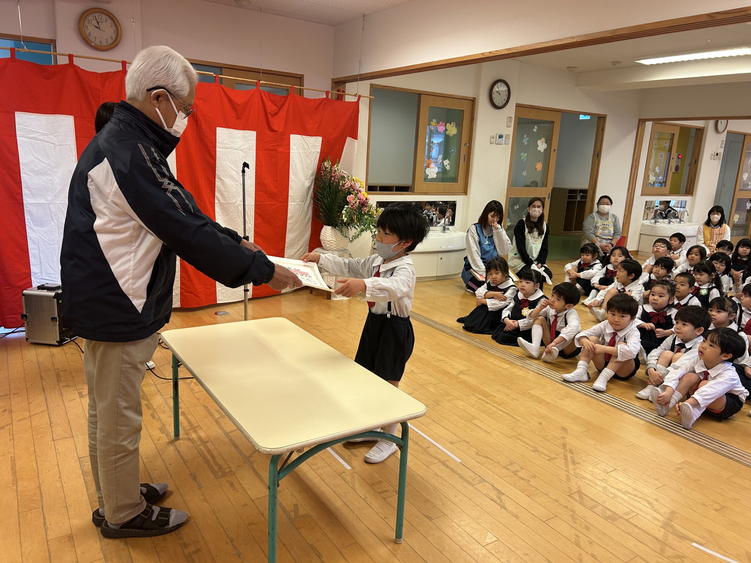 園長先生から、お休みが0回のお友だちには皆勤賞、