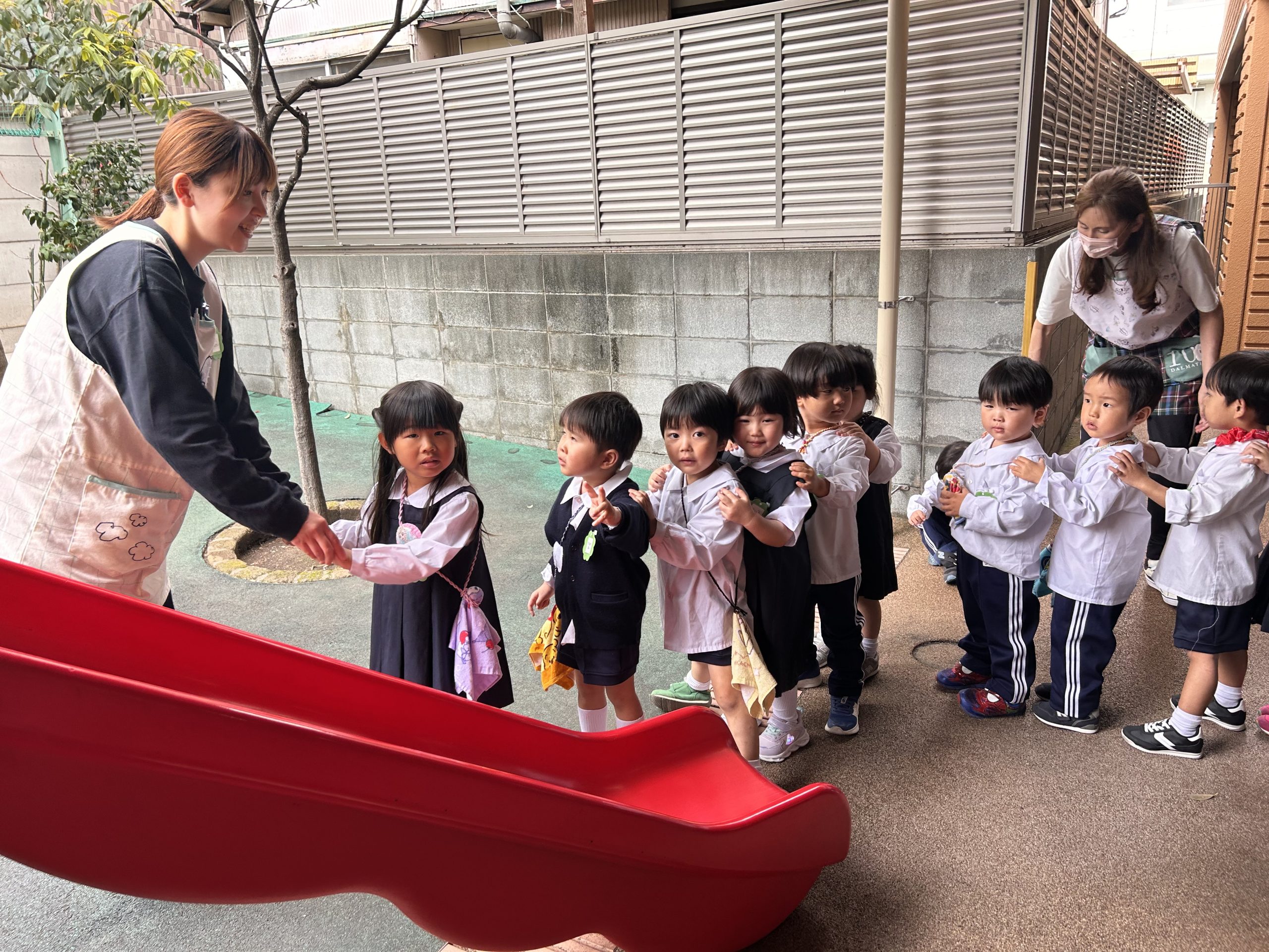 初日は泣いていた年少さんも、外遊びでは元気いっぱい笑顔で走り回っていましたよ☺