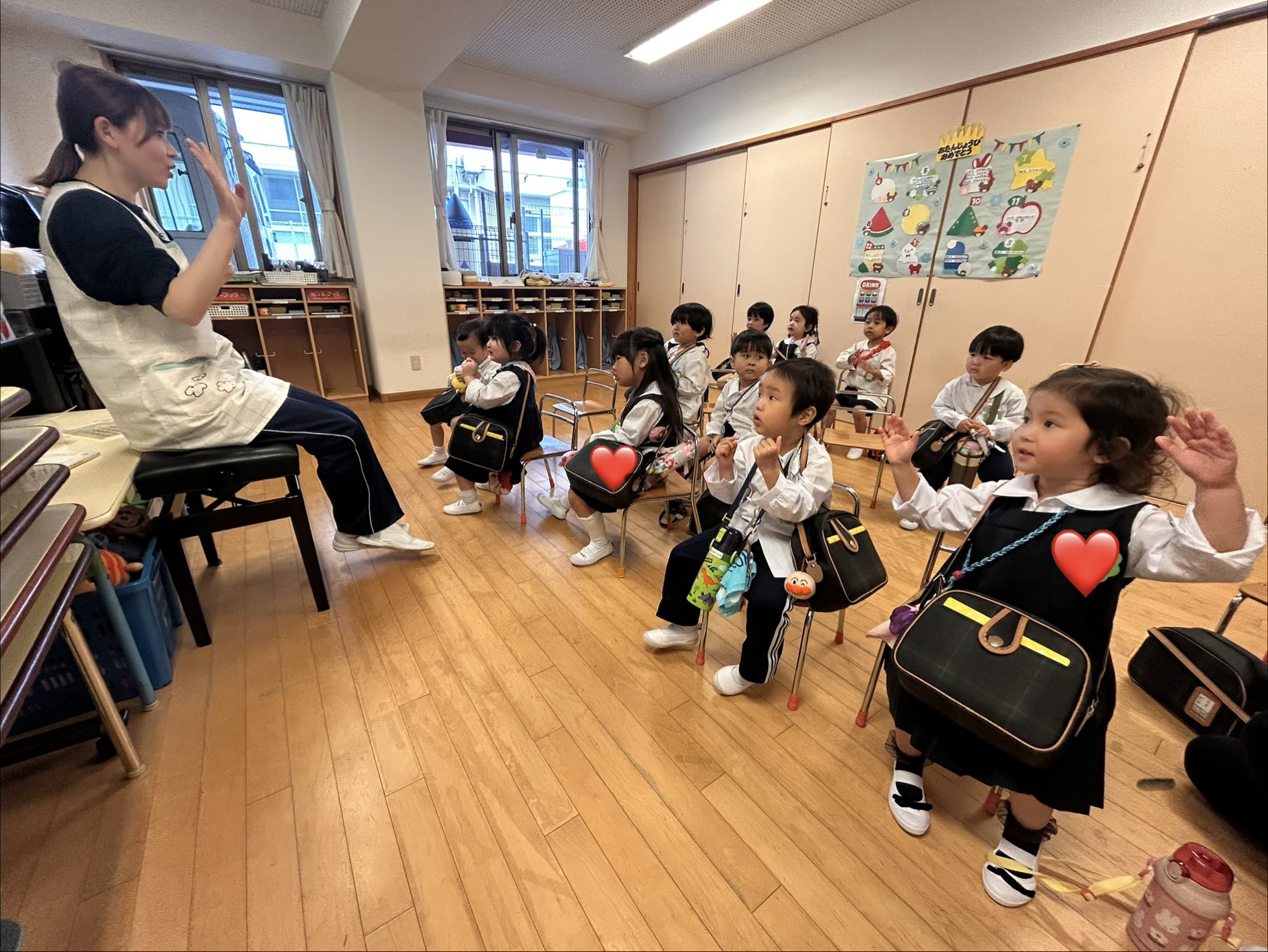 おイスにも上手に座って、先生のまねっこ。手遊びもできました~🎵