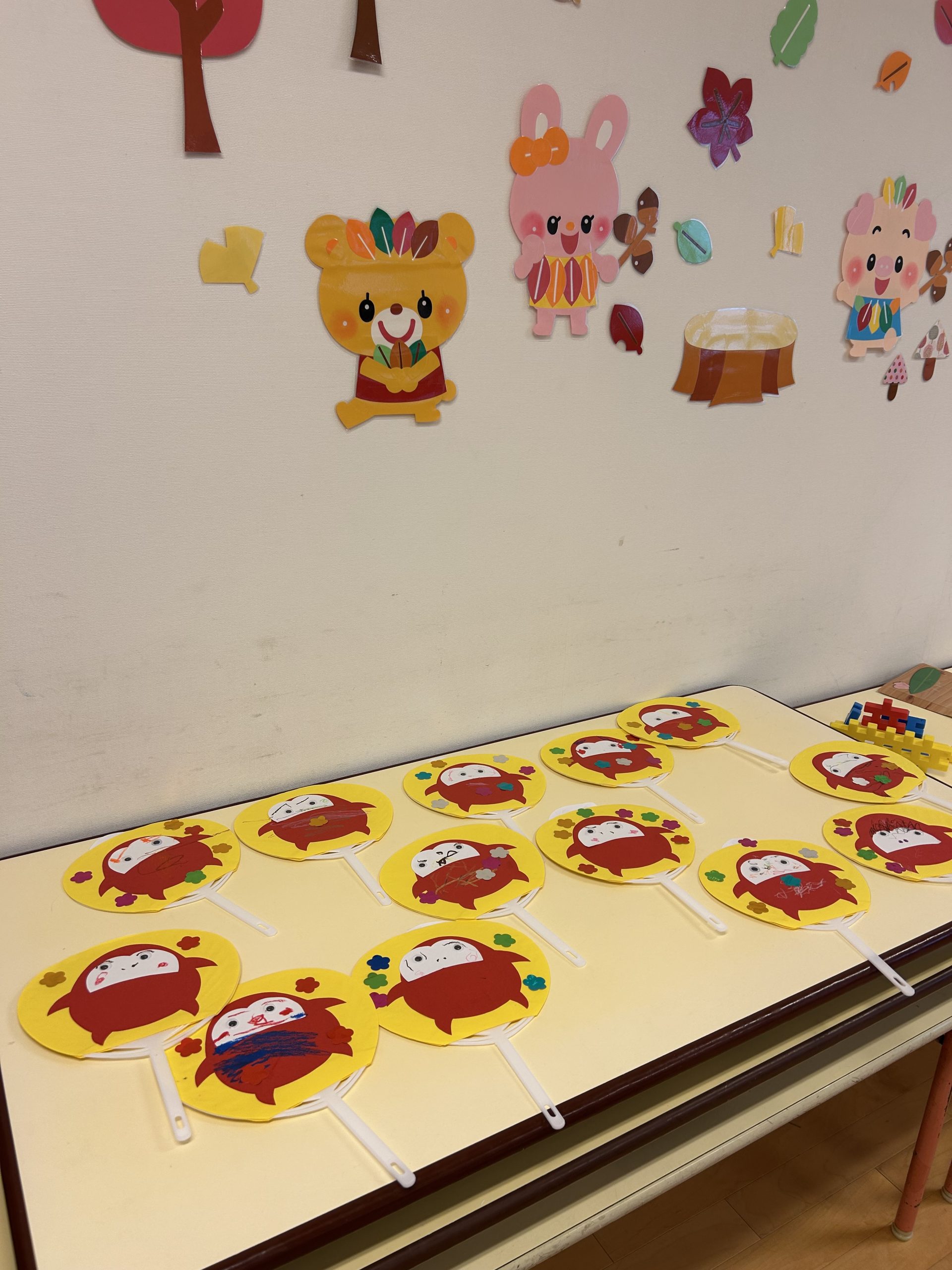 みんなかわいいお顔のだるまさんのうちわが出来ました🥰